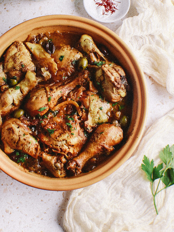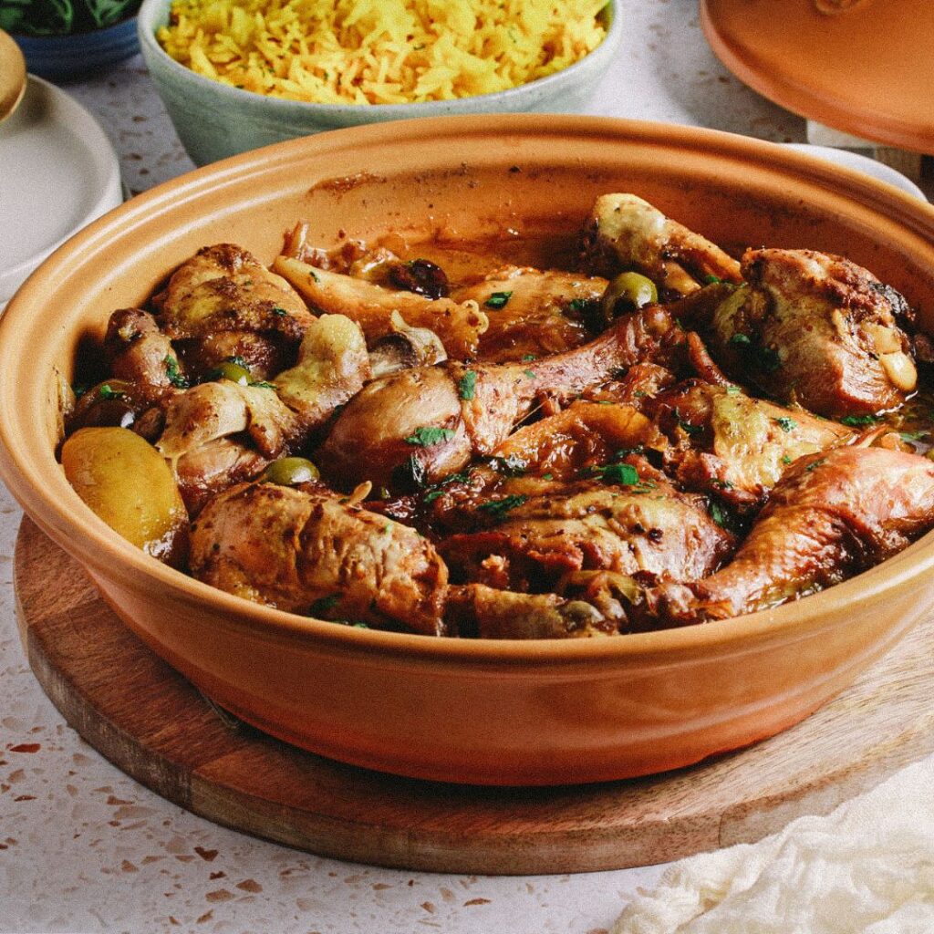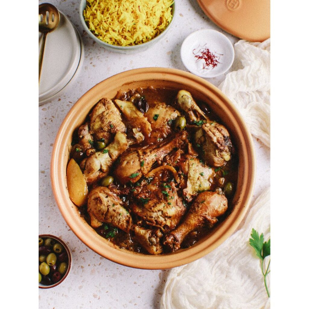 This Ras El Hanout Chicken Tagine is served with homemade preserved lemons and saffron rice. A modern take on a Moroccan classic.