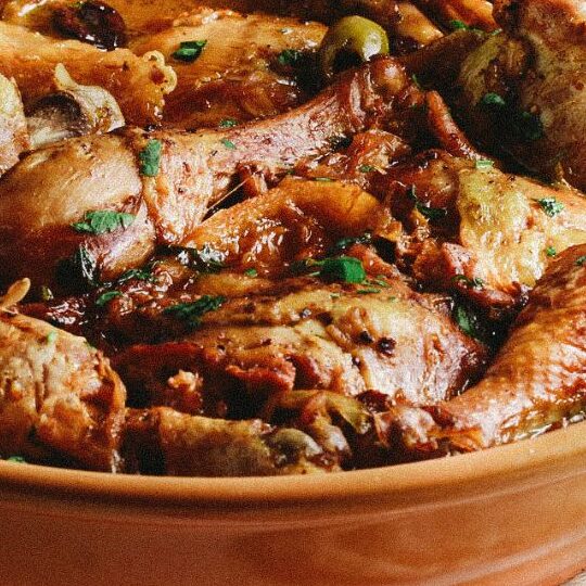 With the tagine’s elegantly shaped lid, the steam rises and condenses before falling back into the pot—self-basting the chicken, preserving moisture, and deepening those citrus-spice notes. Served alongside saffron basmati rice that soaks up every drop of sauce, it becomes a sensory experience—not just a meal.